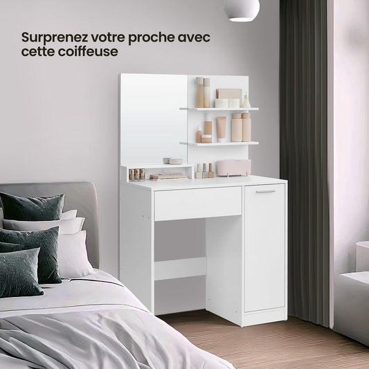Alliez style et praticité avec un meuble coiffeuse spécialement conçu pour les femmes. Doté de rangements astucieux et d’un design soigné, il offre un espace confortable pour les routines beauté du quotidien.