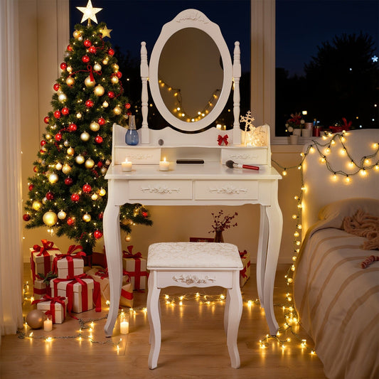 Apportez confort et élégance à votre espace beauté avec un tabouret assorti à votre coiffeuse. Conçu pour allier stabilité et style, il complète parfaitement votre coin maquillage tout en s’intégrant à votre décoration.