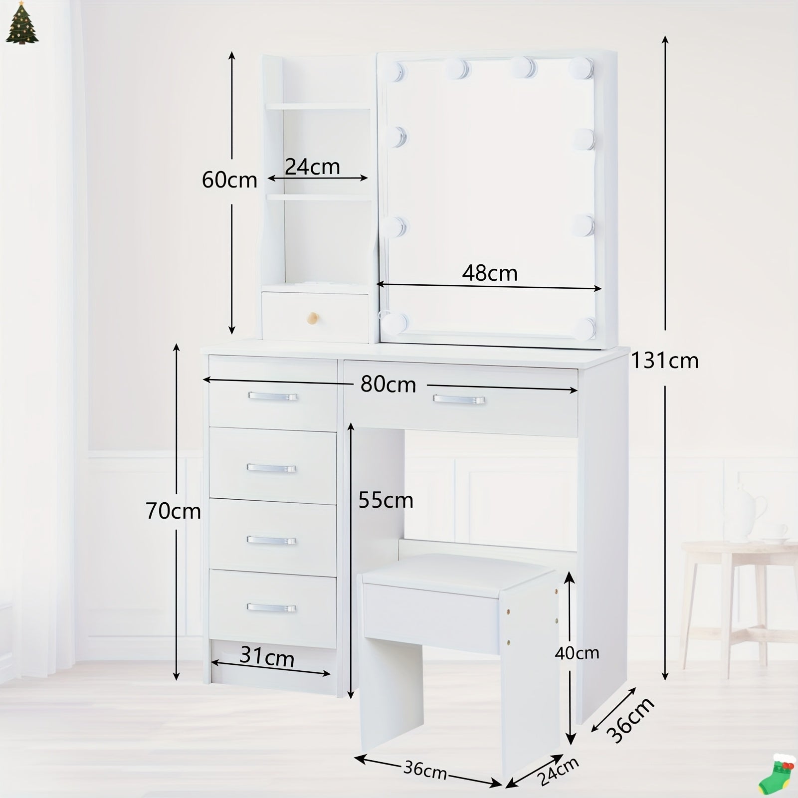 Malgré sa silhouette compacte et légère (moins de 30 Lbs), elle intègre un tiroir utilitaire pour garder vos produits essentiels organisés et hors de vue. Le style minimaliste de cette coiffeuse blanc en fait un choix polyvalent, idéal pour les espaces réduits ou ceux cherchant à optimiser la lumière et la sensation d'ouverture. Elle est l'ajout parfait pour celles et ceux qui apprécient un design élégant combiné à une fonctionnalité quotidienne.