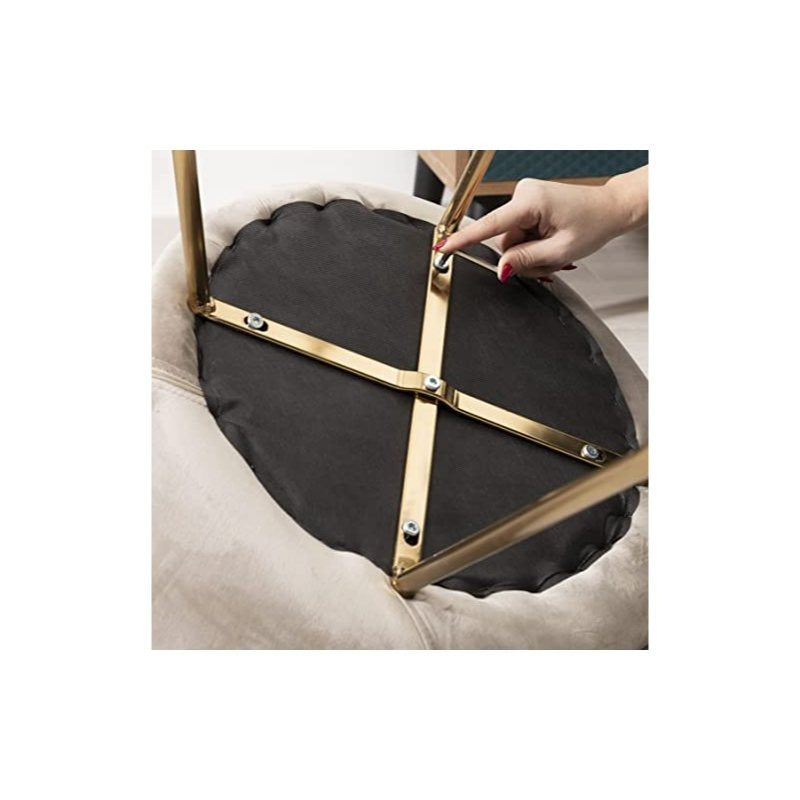 Ajoutez une touche de sophistication à votre intérieur avec ce fauteuil coiffeuse en velours au style GLAM. Idéal pour la chambre, le salon ou même comme chaise de bureau élégante, son design circulaire et ses pieds en fer doré en font une pièce maîtresse. Conçu pour le confort, il dispose d'un rembourrage en mousse souple et est recouvert d'un velours premium. Sa structure robuste en bois et métal assure une grande durabilité et peut supporter jusqu'à 200 kg.